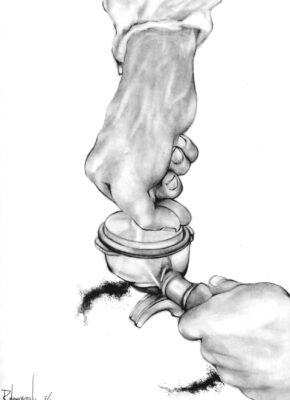 I was wrong. As baristi pass the 20 year mark on daily shifts, some have developed wrist or shoulder injuries from packing the coffee by hand. And as for myself, at the 35 year mark of packing by hand…I developed wrist problems.