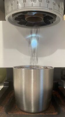 The Pico is turning the ring burr at 800 RPM, resulting in about 17 seconds of grinding time for a 22g dose. Turning at about 300 RPM, the Kony burr’s grinding time is in the 15-second range. Microscopic evaluation revealed a significantly higher percentage of fines in the powder produced by the Pico than the Kony at 300 RPM. However, the increase of fines in the mix that gives you such thick shots presents its own challenges for the barista. The Pico demands vigorous distribution techniques to avoid brewing water channeling through the packed coffee.