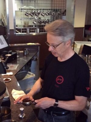 David at work grinding coffee at Espresso Vivace in Seattle.